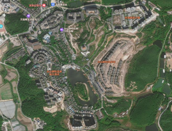 抵押物為臺山頤和溫泉城地產(chǎn)開發(fā)有限公司名下位于臺山市三合鎮(zhèn)溫泉圩南郊的三宗土地(一宗商服用地、兩宗住宅用地),土地面積合計共 305,586.70 ㎡,共計458.38畝。抵押物屬于項目其中三宗用地。所在項目總規(guī)劃用地約938,410㎡,規(guī)劃總建筑面積1,362,017㎡,總?cè)莘e率1.2,總計容面積1,118,568㎡,分為A-T共21個組團,部分組團已竣工,部分組團仍為在建工程或未開發(fā)。